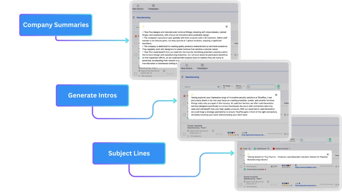 Generate company summaries in a click to know exactly what your prospect is about and how you can help their company.